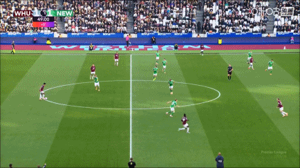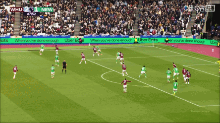 第4分钟,墨菲前场右路带到禁区前沿,连续晃动后闪开空档抽射破门,纽卡斯尔联1-0西汉姆联。↓