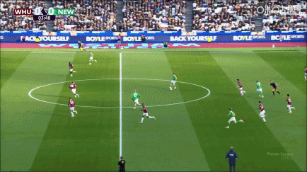 第45+4分钟,西汉姆联中场过顶传球找到右路空档,万比萨卡横传中路,博特曼拦截不慎自摆乌龙,西汉姆联2-1纽卡斯尔联。↓