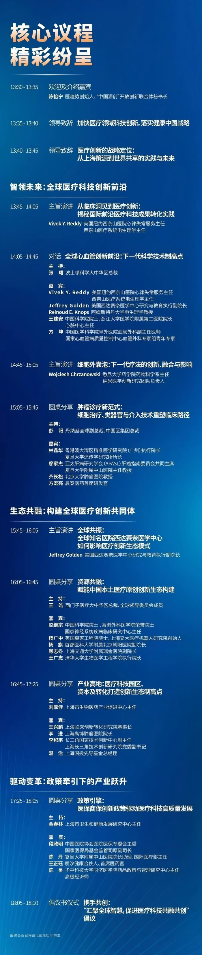 本次大会聚焦心血管、肿瘤、神经退行性疾病三大领域,联合全球医疗伙伴,从全球临床技术、到临床创新、再到生态创新,一站式领略全球医疗科技最新成果。不仅如此,这里还将展示创新中国方案,拓展生态资源,进行高频同行对话,为临床创新者打造“专属交流圈”。