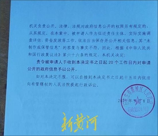 6月13日,吴某某因不认可岗上镇人民政府答复内容,向藁城区人民政府申请行政复议。藁城区人民政府于9月8日作出行政复议决定书(藁政行复〔2025〕172号)。决定书显示:根据《中华人民共和国政府信息公开条例》第十条规定,行政机关制作的政府信息,由制作该政府信息的行政机关负责公开;行政机关从公民、法人和其他组织获取的政府信息,由保存该政府信息的行政机关负责公开;行政机关获取的其他行政机关的政府信息,由制作或者最初获取该政府信息的行政机关负责公开。法律、法规对政府信息公开的权限另有规定的,从其规定。在本案中,被申请人作为征迁责任主体,实际实施调查评估、资金发放等工作,依法应当保存并公开相关信息,其“未制作或保管信息”的答复与事实不符。因此,根据《中华人民共和国行政复议法》第六十六条的规定,本机关决定:责令被申请人于收到本决定书之日起20个工作日内对申请公开的政府信息予以公开。