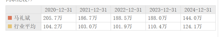 皮阿诺董事长为马礼斌。其于2024年从公司领取薪酬为144万元,较2023年同期的188万元,减少44万元。