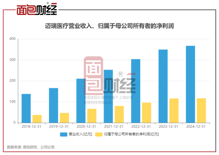 从2018年至2024年,公司营收从137.53亿元增长至367.26亿元;归母净利润从37.19亿元攀升至116.68亿元。