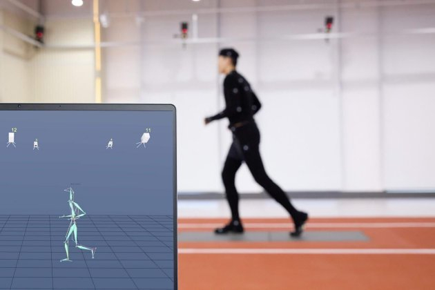 为此,实验室配备多功能超大跑台、无边动力泳池、模拟滑雪机、功率自行车等41类专业运动器械,以及气体代谢仪、动态心电检测仪、VBT速度力量功率计等29类专业金标检测设备,在高度还原各运动场景的同时精准捕捉运动过程中的体征数据。实验室还配备了惯性动作捕捉仪,以及62台三维光学动作捕捉相机,配合测力台即可实现对运动姿态的高精度识别。