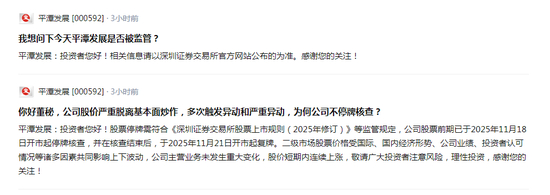 对此,公司回应表示,股票停牌需符合《深圳证券交易所股票上市规则(2025年修订)》等监管规定,公司股票前期已于2025年11月18日开市起停牌核查,并在核查结束后,于2025年11月21日开市起复牌。二级市场股票价格受国际、国内经济形势、公司业绩、投资者认可情况等诸多因素共同影响上下波动,公司主营业务未发生重大变化,股价短期内连续上涨,敬请广大投资者注意风险,理性投资。