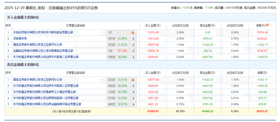具体来看,今日上榜的席位中,深股通居第二大买入席位,买入金额为1.34亿元,卖出金额为4955.41万元,合计净买入8458.24万元。长城证券深圳华为稼先路证券营业部居买一席位,净买入1.36亿元;金融街证券上海河南南路证券营业部净买入9749.57万元。