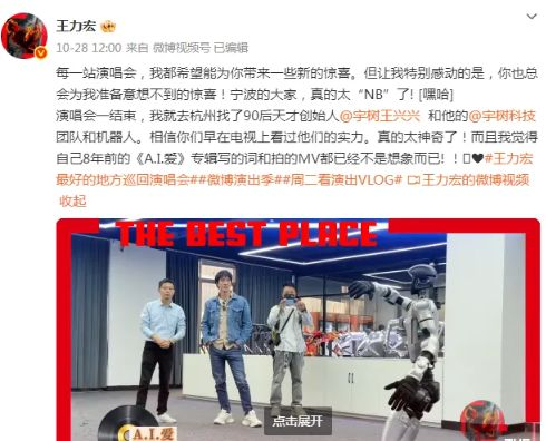 随后王力宏工作室 发文认证“全球首个演唱会机器人舞台来袭”。