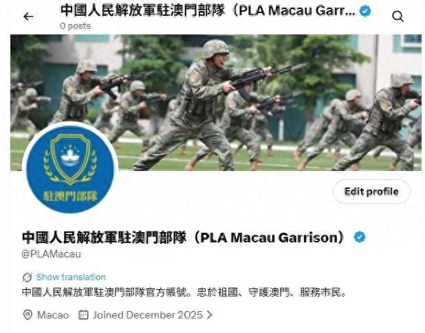 中国人民解放军驻澳门部队官方账号在X平台正式开通