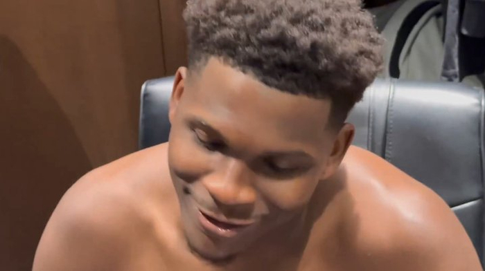 赛后,爱德华兹在更衣室接受了记者的采访。