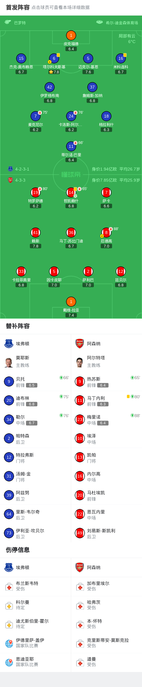 第27分钟,奥布赖恩手球被判点球,哲凯赖什点球破门,阿森纳1-0埃弗顿