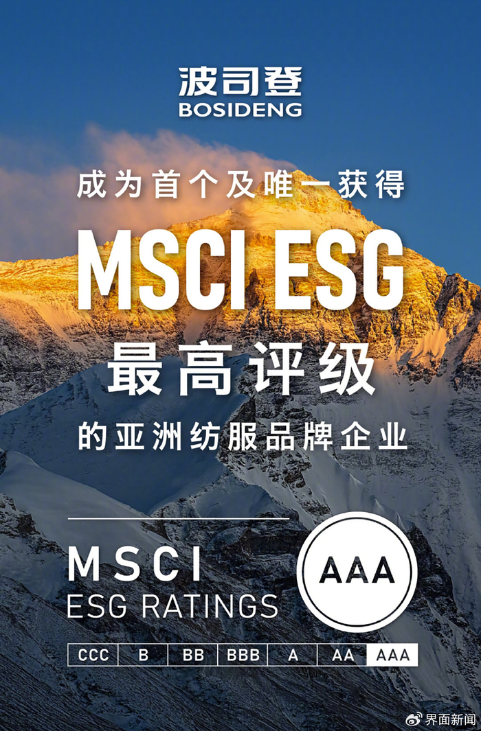 这一合作,是波司登将环境、社会及管治(ESG)战略人格化、具象化传播的关键一步。近年来,波司登在ESG领域持续发力。品牌确立了清晰的“1+3+X”战略框架与碳目标,并设定了“2038年前实现运营环节净零排放”的碳目标。其采购羽绒均通过瑞士Bluesign®和RDS认证,既符合动物福利标准,也践行绿色生产理念;今年9月,波司登首次发布气候责任报告,并创新构建了「弹性财务预算规划+柔性供应链+全渠道商品一体化运营」的三大韧性模式,有效管理气候波动风险。2025年10月,波司登获全球权威指数机构MSCI(明晟)的ESG评级上调至AAA最高级,成为亚洲纺织服装行业首家获此评级的企业。
