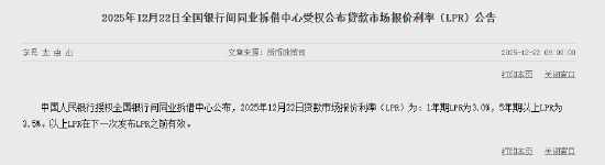 12月22日金融一线消息,12月贷款市场报价利率(LPR)报价出炉:5年期以上LPR为3.5%,上月为3.5%。1年期LPR为3%,上月为3%。