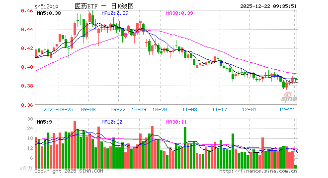 医药ETF(512010)开盘涨0.00%,重仓股恒瑞医药跌0.07%,药明康德跌0.09%