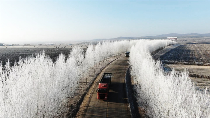 冬至时节,充足的水汽和持续的低温天气为雾凇的形成提供了绝佳的条件,黑龙江省佳木斯市汤原县迎来雾凇奇观。树枝上冰霜悬挂,冰花绽放在晨雾间,宛如银白色的童话世界。(黑龙江省佳木斯市汤原县纪委监委供 刘城驿 摄)