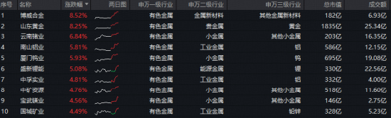 图:有色龙头ETF标的指数涨幅前十大成份股