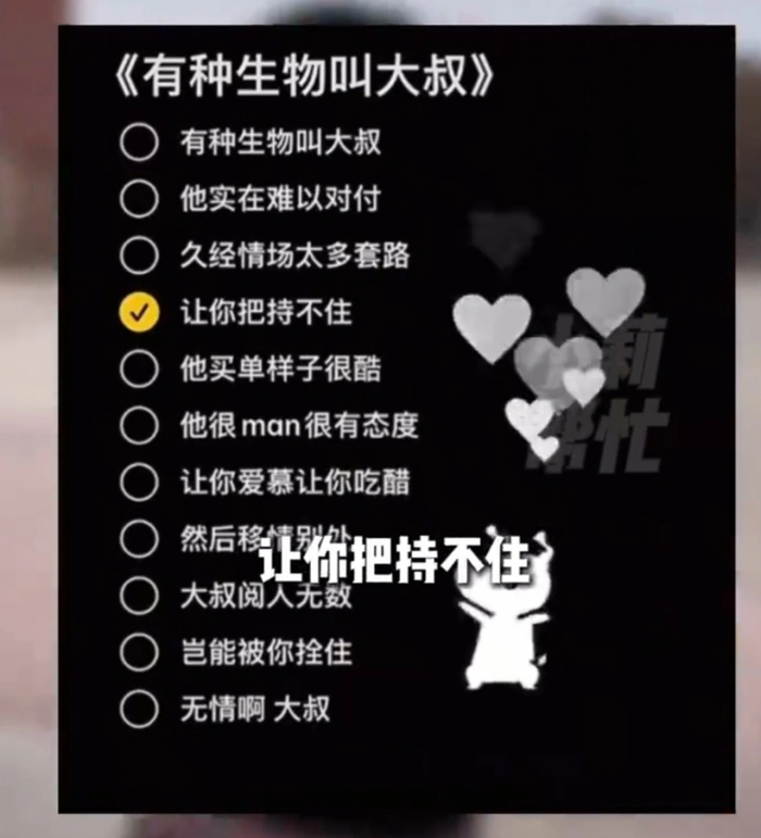 比如一首“有种生物叫大叔”的毒歌曲,在未成年孩子中流传甚广。